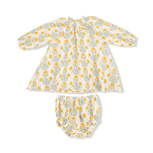Winter Dandelions LS Ruffle Smocked Dress & Diaper Cover
